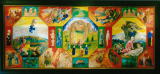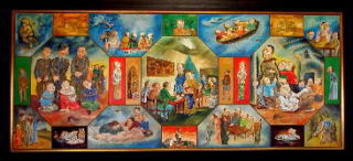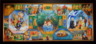 『(前略)この一族の興亡を叙述しているととれる詩句によって展開される光景は実に種々雑多である。旧約・新約聖書に想を得ているものや東洋の故事から、おそらく作者が両親から聞かされた第二次世界大戦・戦後の情景、そして作者自身見つめている現代などが161のシーンに埋め込まれている。まるで坩堝のような画面だが、そこから「バベルの塔」のように、みる者の内に屹立してくるものがある。それは、人間が担わざるを得ない「宿命」と生への意志ととれる。(後略)』